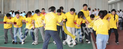 秋高气爽的日子里,在燕郊的一家体育馆里面,为天保建设承办了2011年秋季趣味运动会。他们个个精神饱满,英姿飒爽,在本次由飞天体育所提供的趣味运动运动会上大显身手,通过本次的趣味运动会把公司成员从日常繁重的工作中解脱出来,让成员彻底抛弃工作中的压力,让快乐不再压抑,将信心从此增强,把力量悄悄凝聚。企业趣味运动会兼顾了趣味性与团队性。即竞技、娱乐、健身等综合于一体的全新趣味训练活动,激发员工团队协作、敢于拼搏,永争第一的精神,玩中享受快乐,欢乐中得到收获。北京飞天体育提供了本次趣味运动会所有的器材。