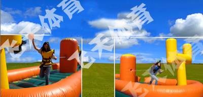 比赛规则:参赛运动员4人-6人(分两组)或者每队派出男女各4名参手参加比赛,每队的男女均等,在指定的设备上起跑,运动员身后是具有非常拉力的橡皮筋、在拉力的作用下、前行到前面的篮球筐下投篮,在规定的时间内以最后入筐的球总数最多的队获胜。