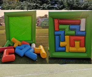 比赛开始后,第一名队员拿起一个充气道具方块,从起跑线出发,跑到指定区域内,把方块摆放好,回到起点处第二名队员出发,以此类推,比赛结束后,比赛用时加上空格数(每个格为3秒),用时少者名次列前。